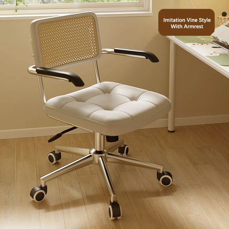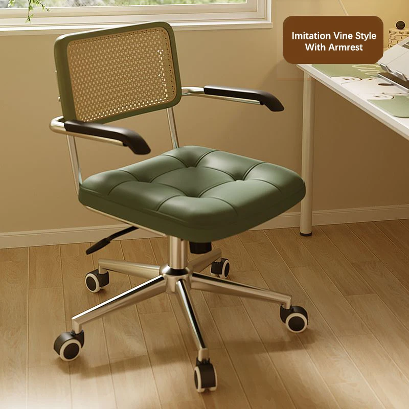 Office Chair Retro Computer Chair Simple Study Desk Armchair Swivel Backrest Lift Chair Leather Armchair with Rocking Function